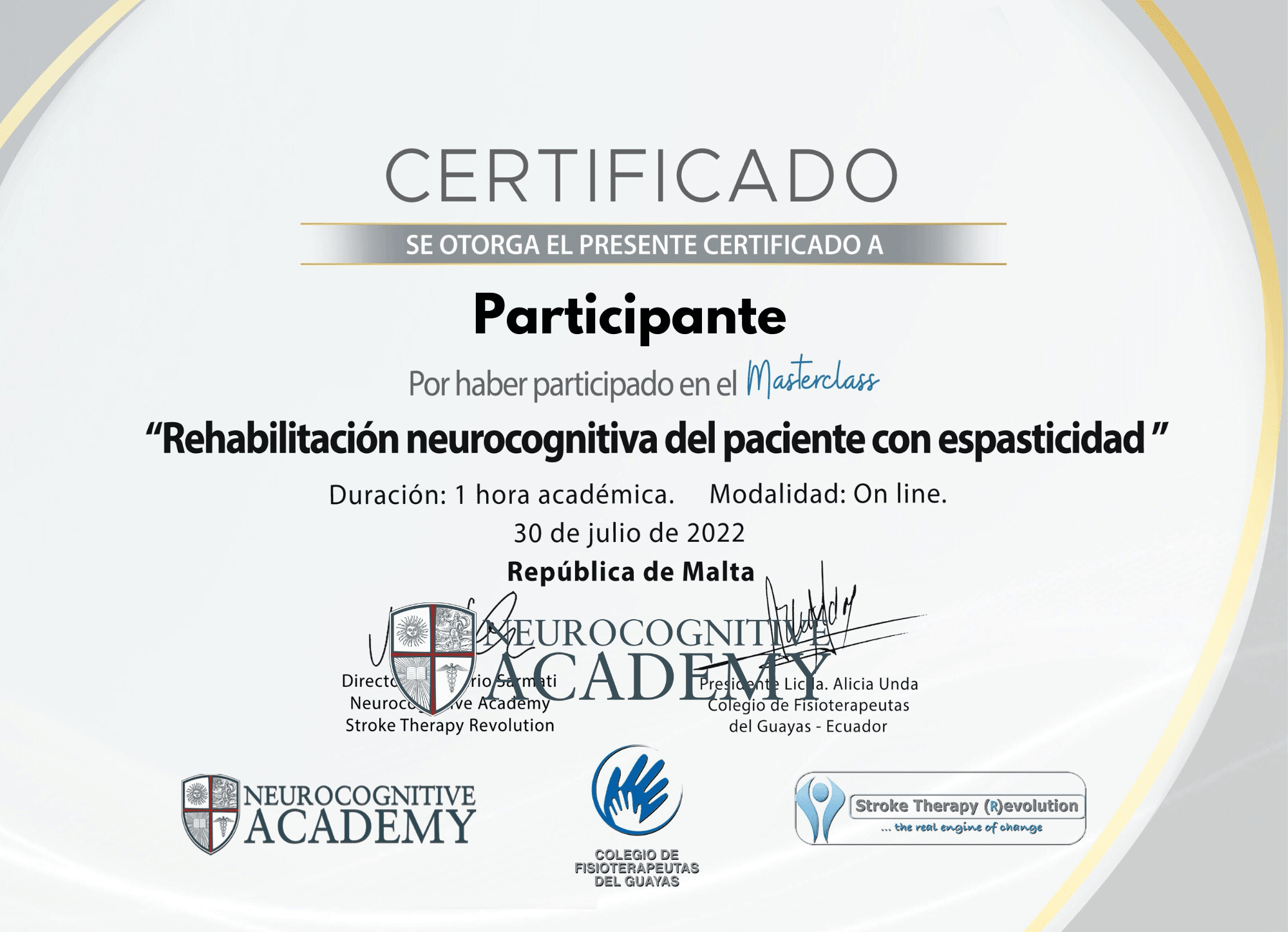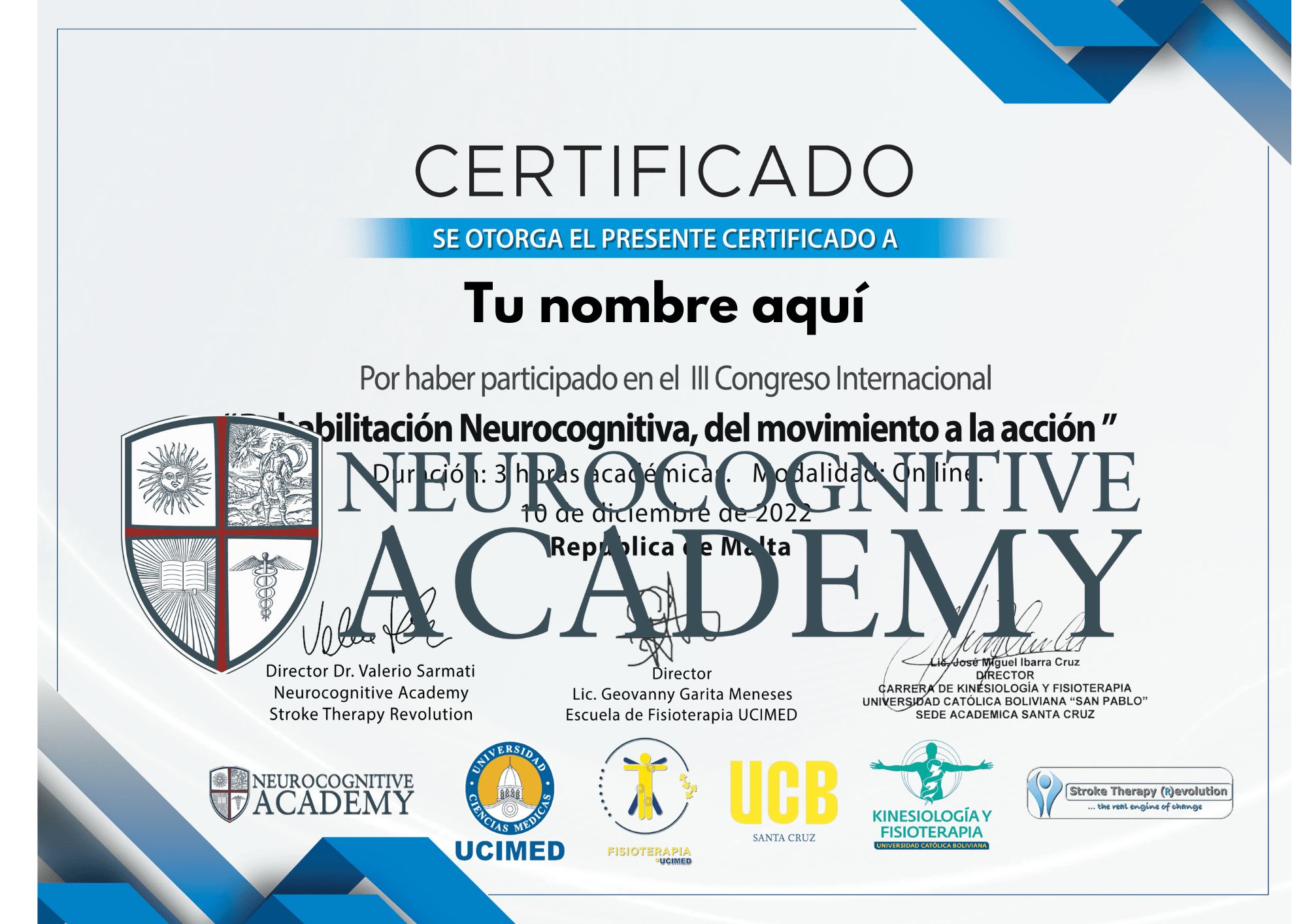 Avalado por la carrera de fisioterapia de la Universidad de ciencias médicas de Costa rica, y la Escuela de kinesiología y fisioterapia de la Universidad católica boliviana san Pablo sede Santa Cruz junto a la Neurocognitive Academy